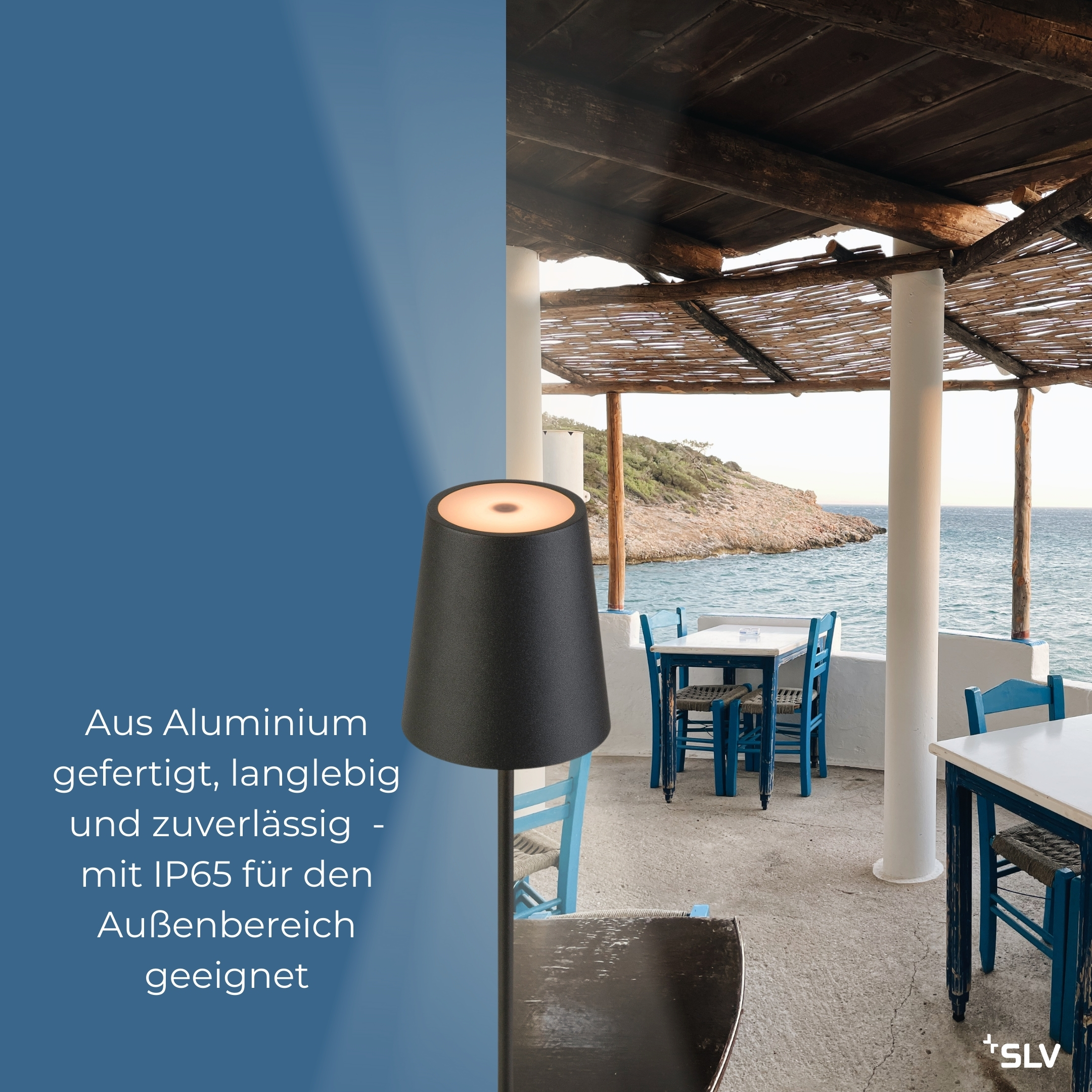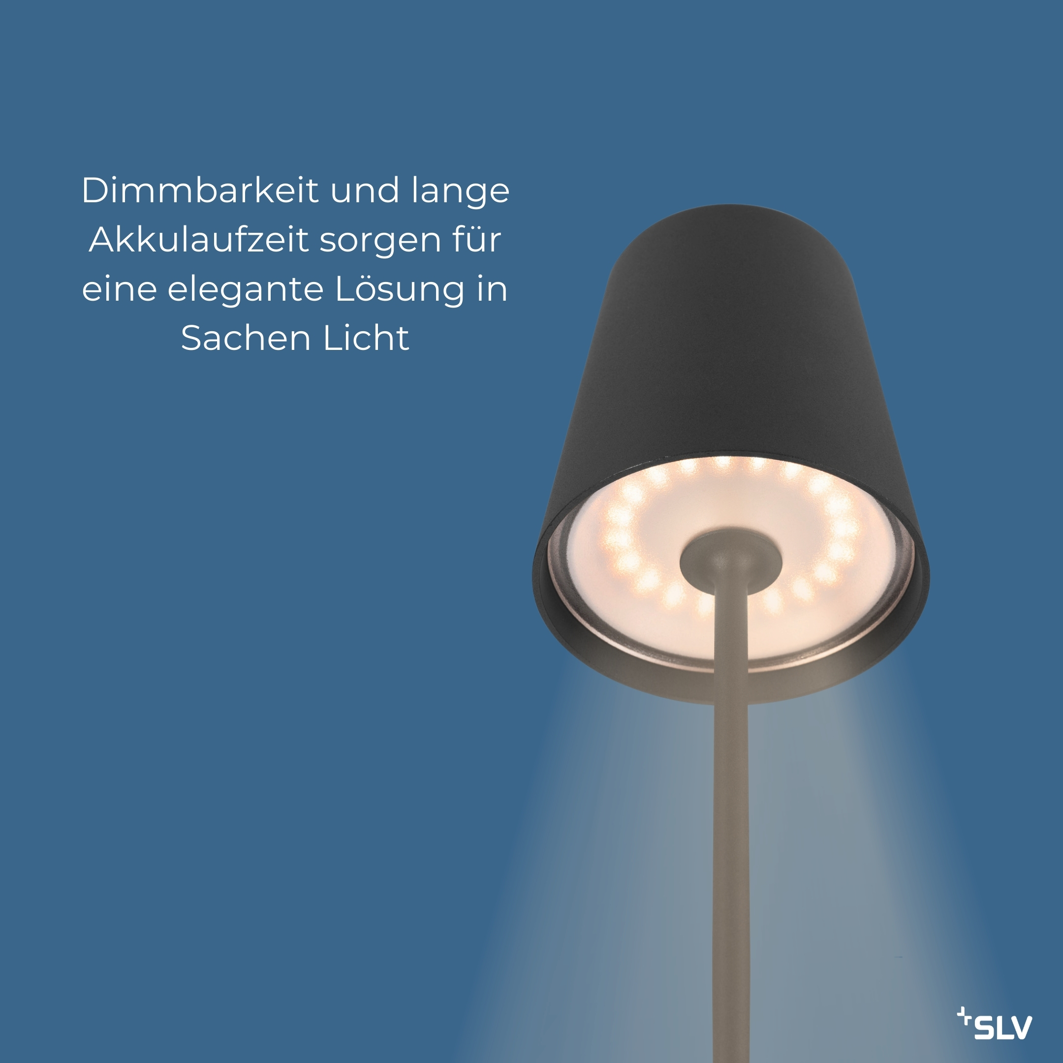VINOLINA TWO heißt die hochwertig aus Aluminium gefertigte Tischleuchte, die sich dank Schutzart IP65 auch nach draußen mitnehmen lässt. In ihrem zeitlosen Design verströmt sie mit einer einzigen Akkuladung 10 Stunden ein nach oben und unten gerichtetes Licht, dessen Farbtemperatur via CCT-Switch einstellbar ist (2200K/2700K/3000K). Dabei ist die mobile Leuchte in sechs verschiedenen Trendfarben erhältlich. Die Ladestation ist mitsamt USB-Kabel im Lieferumfang enthalten. Erleben Sie mit VINOLINA TWO eine elegante Lösung in Sachen Licht, die via Touchschalter noch dimmbar ist.