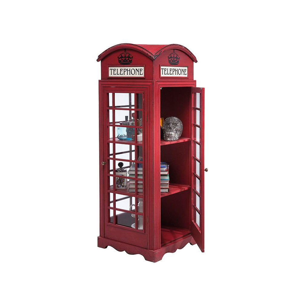 Die Vitrine London Telephone ist im Look der klassischen Londoner Telefonzellen gehalten und bietet nicht nur Stauraum sondern ist auch ein echter Hingucker für jedes Etablissement.