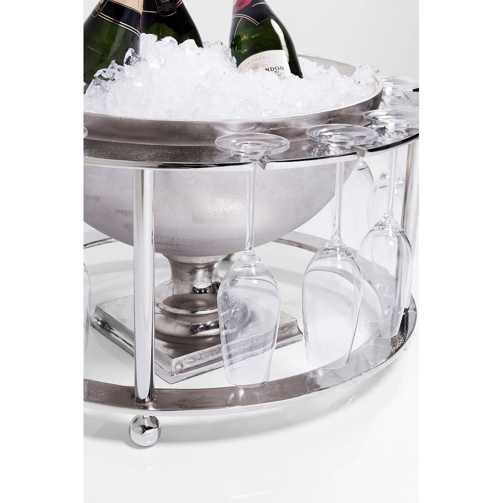 - Flaschenkühler Two-in-One: Rund um die voluminöse Eisschale zieht sich ein eleganter Ring, an dem 12 Gläser aufgehängt werden können