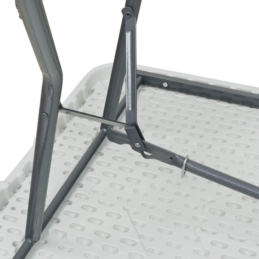 - Weiße Kunststoff-Tischplatte: Pflegeleicht und strapazierfähig.